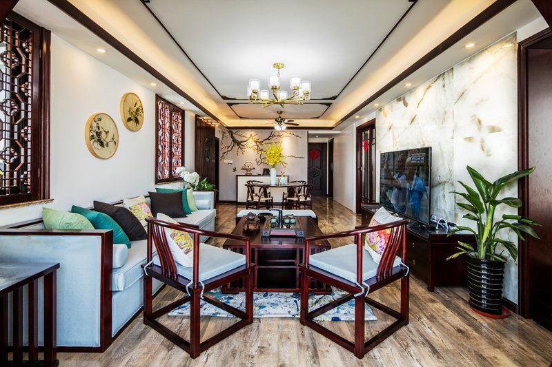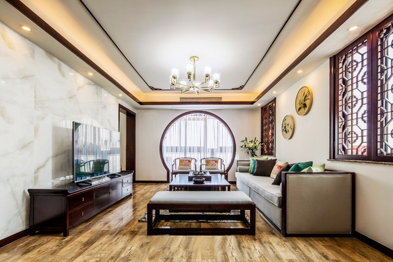 本案是1143平米中式风家装设计效果图,整个家不仅充分利用了中式风的木质家具特点,还有那山水的挂画,木质线条收边的设计,尽情的展现融入了现代时尚元素的中式特色,整体效果展现出一种神韵,还有一种时尚的清新感。