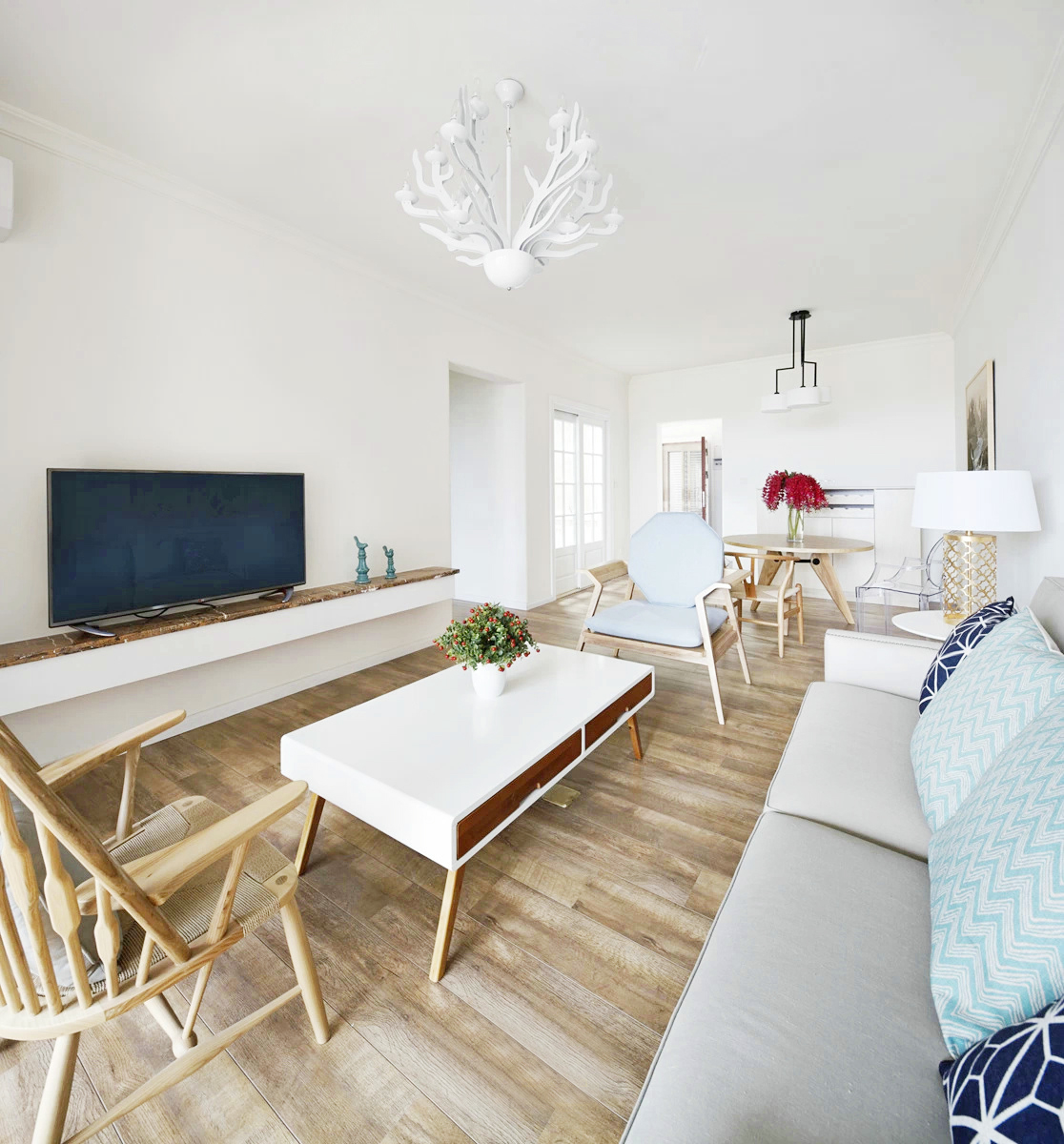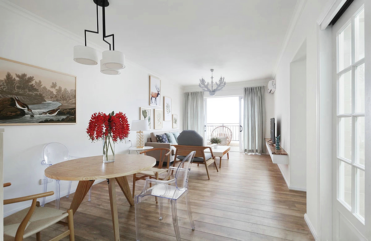 1、原木色系的欧式风格很清爽,也很自然感。花束和抱枕等的颜色点缀,又增加了些许活力