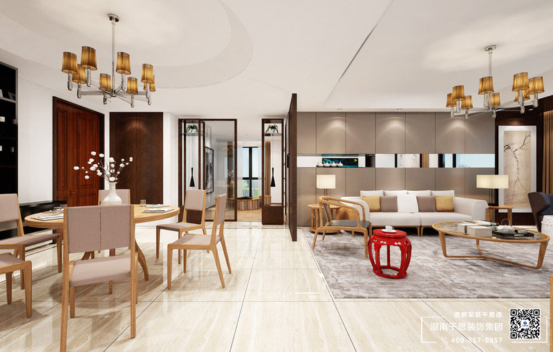 株洲千思装饰:本方案以新中式为设计风格,空间以:“简单呈现细腻,朴实打造优雅”,尽显奢华高贵极尽优雅之美。室内以柔和的米灰色调为主,浅灰柔和的色典,在众多色彩中淡定自然;家具以木为设计主题,禅意的元素肆意挣个空间,静与动只一线之隔,在一种全然悠闲的情绪中去消遣一个闲暇无事的午后时光。