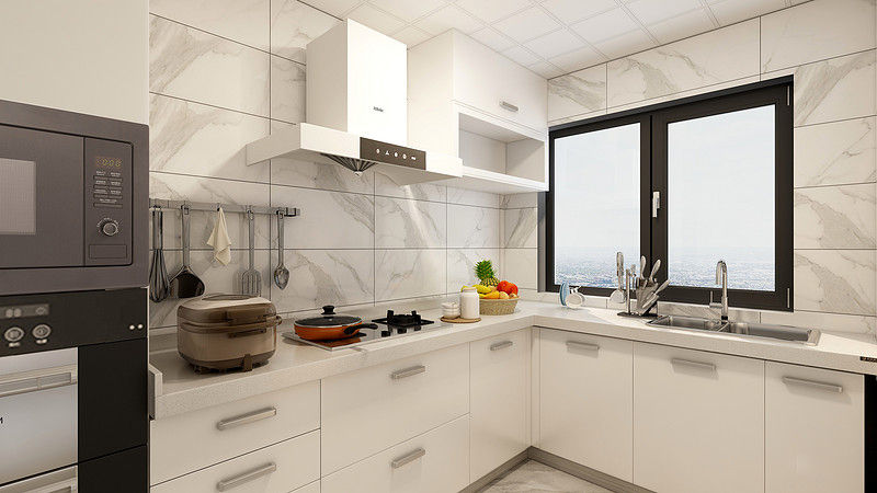 厨房主要就是以使用功能为主,色调整体也是以暖白色为主,显得空间明亮干净。