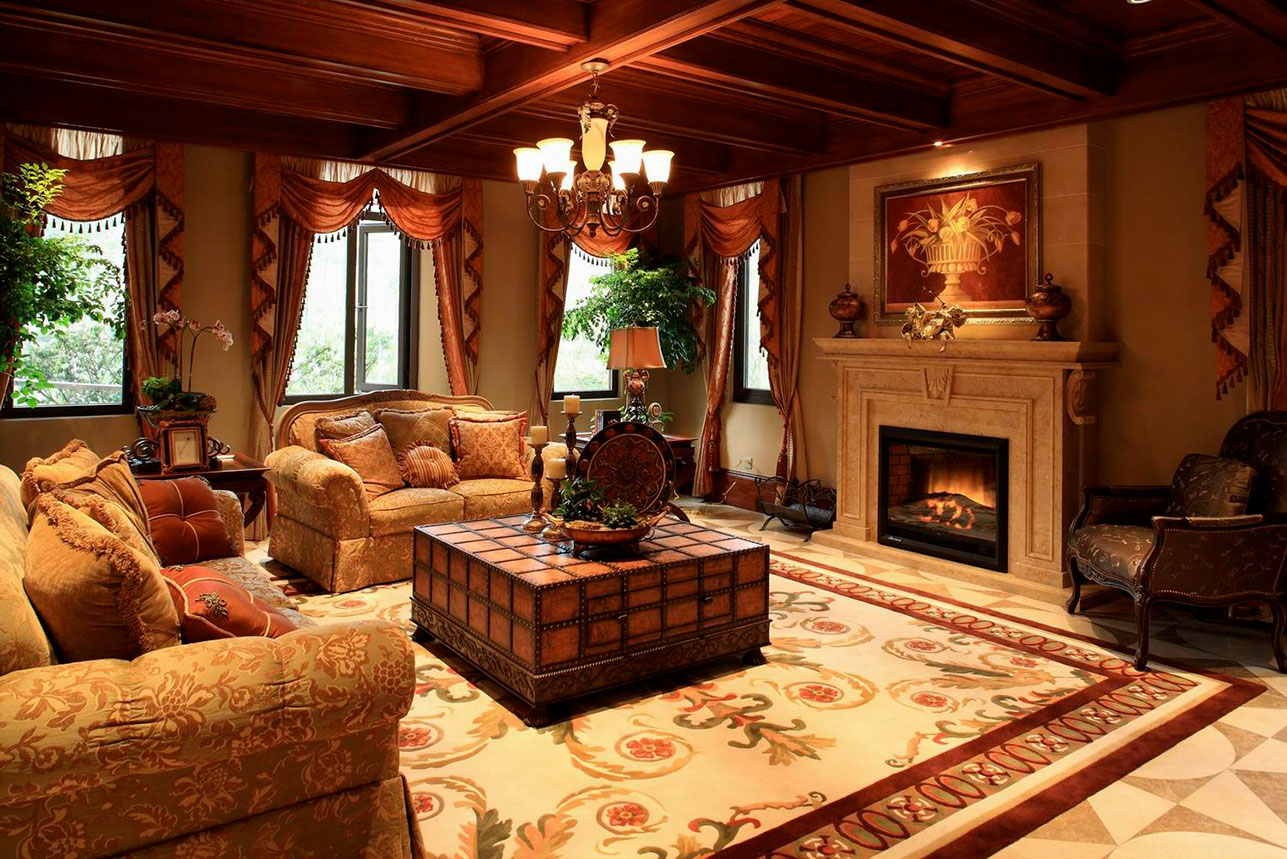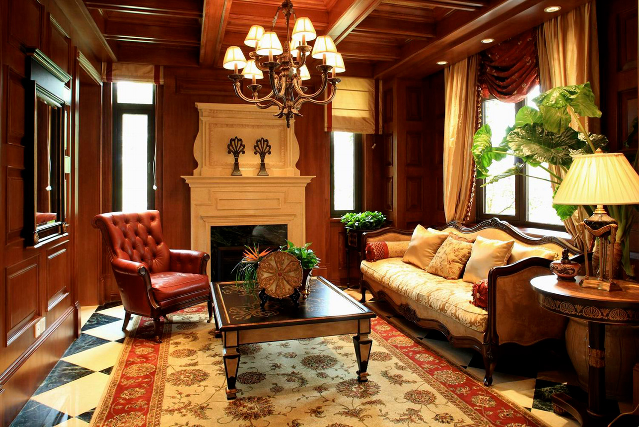 美式装饰喜欢有历史感的东西,这不仅反映在软装摆件上对仿古艺术品的喜爱,同时也反映在装修上对各种仿古墙地砖、石材的偏爱和对各种仿旧工艺的追求上。