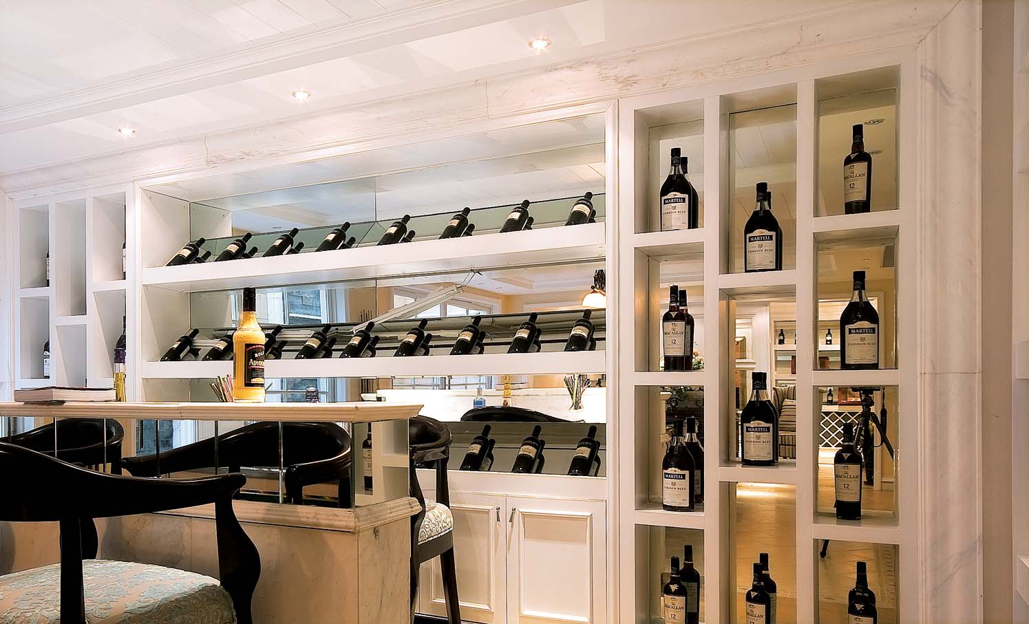 屋主爱酒,特意设计了酒柜和品酒的一块角落