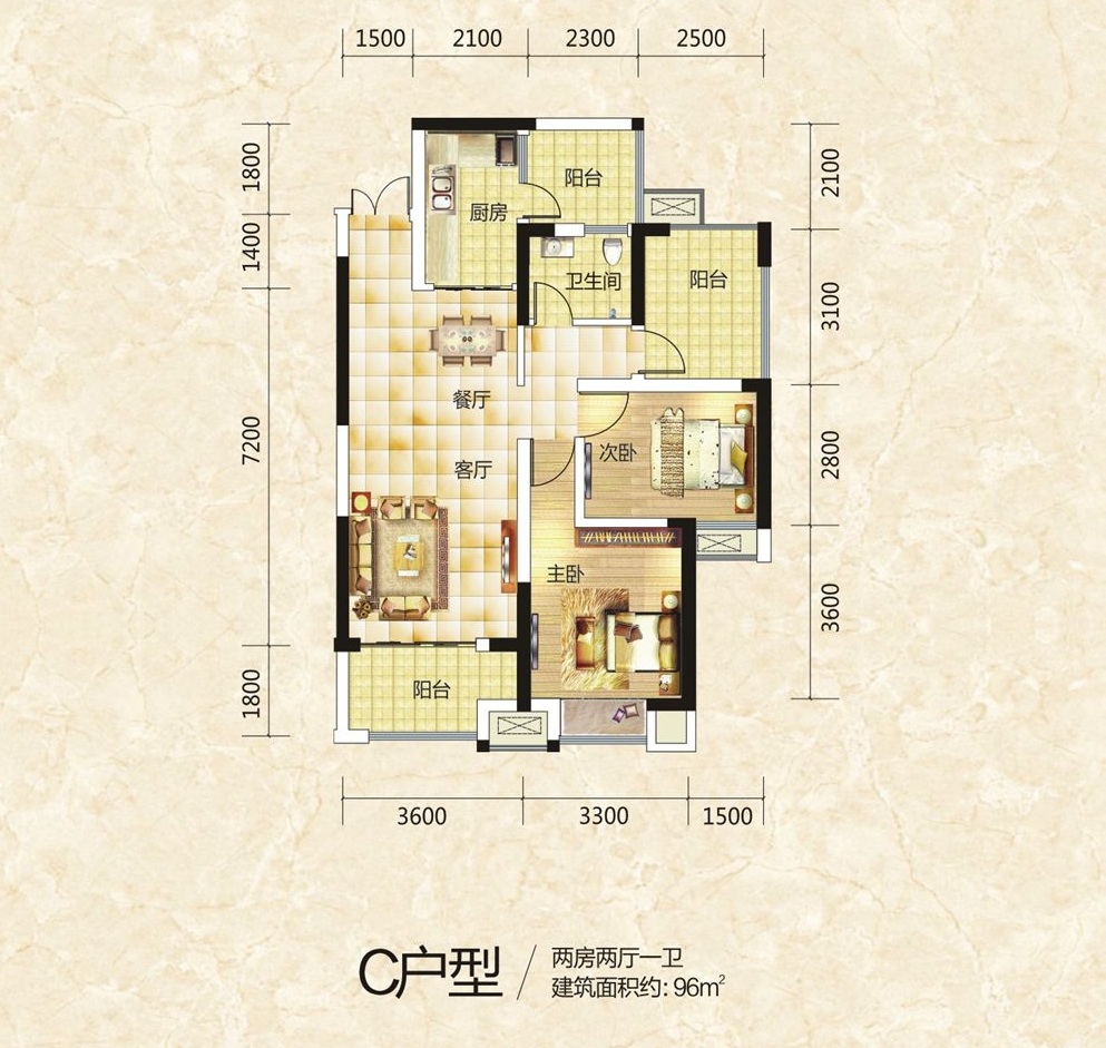 C:项目面积:96平