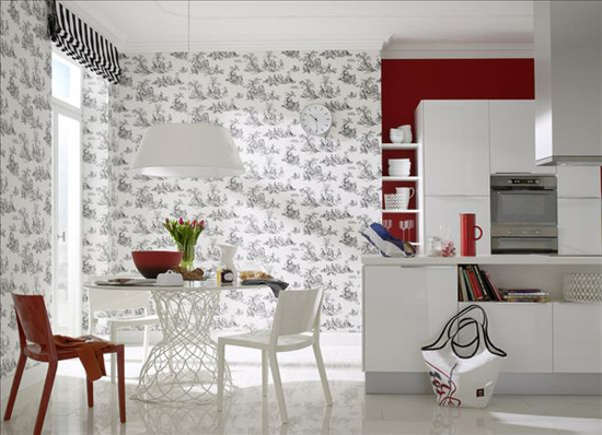 2.贴壁纸:墙壁面层处理平整后,铺贴壁纸。壁纸种类非常多,有几百种甚至上千种,色彩、花纹非常丰富,你总能找到自己喜欢的款式。壁纸脏了也很简单,新型的壁纸都可以用湿布直接擦拭。壁纸用旧了,可以把表层揭下来,无需再处理,直接贴上新壁纸就可以了。壁纸在欧美是墙壁装修的主要方式。
