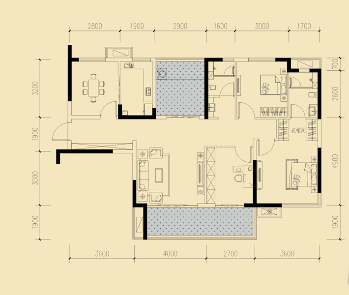 E:项目户型:四房两厅一厨两卫