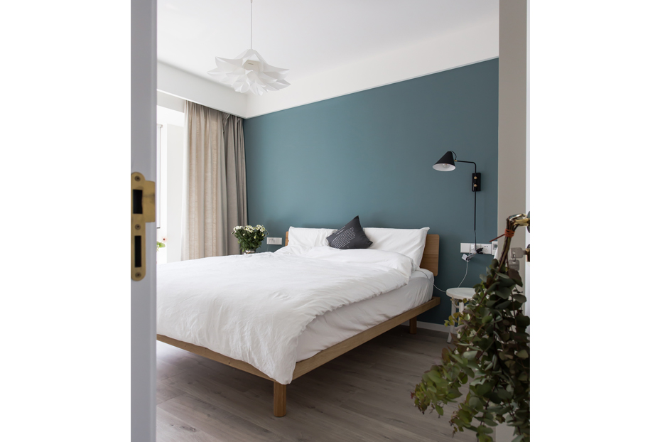 白色的基调,加上墨绿色墙面的冲击,形成有趣的视觉感受,