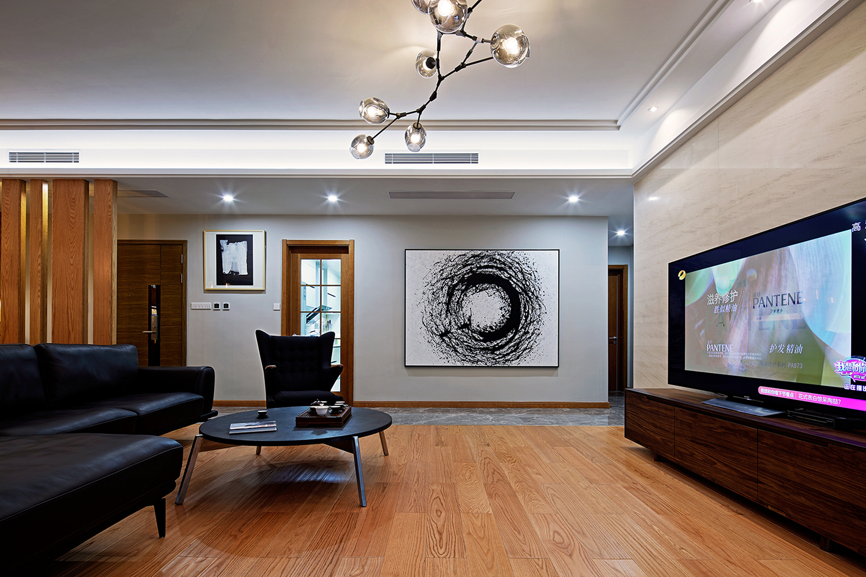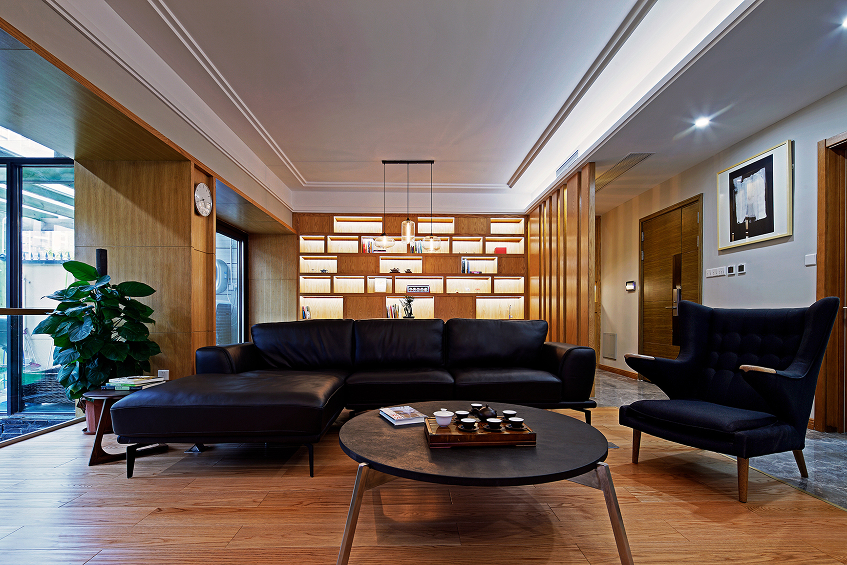 黑色皮沙发恰到好处的压住整个空间的气场,优雅却不张扬,同时带给我们一丝小小的复古情怀。