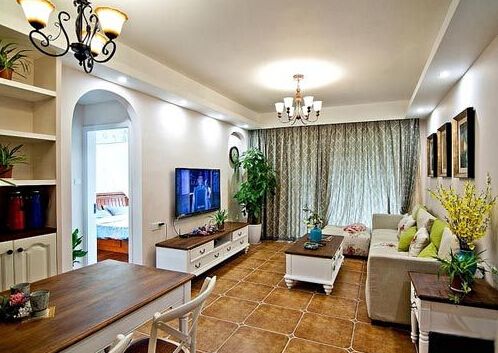 像地中海、田园、乡村美式等风格中,这个门洞还可以根据整体空间的搭配,用马赛克或者花砖来处理,整体效果也是比较大方的。