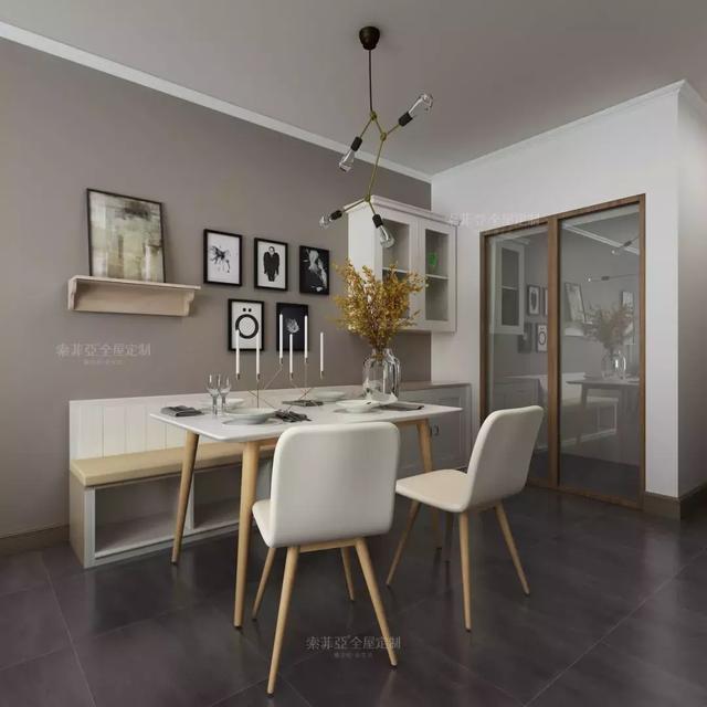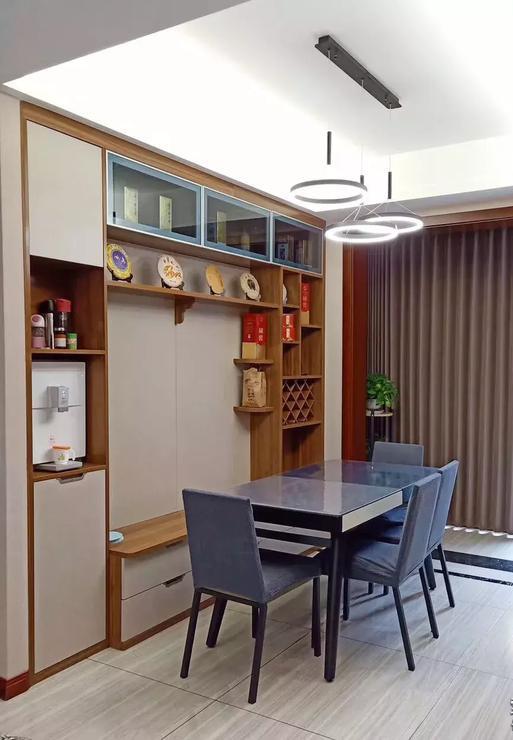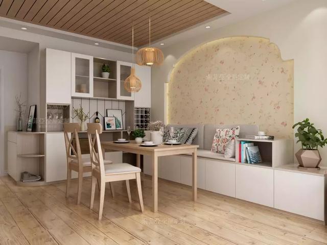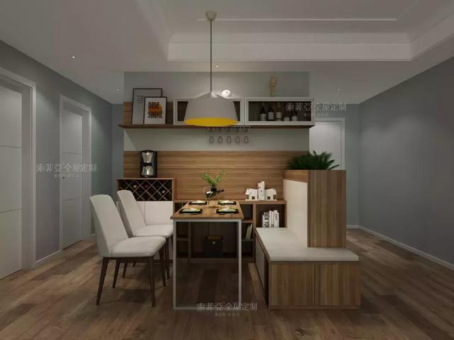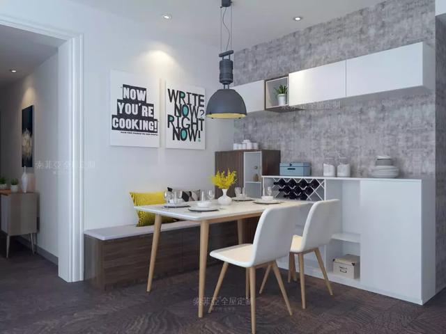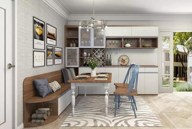 餐厅想要坐得下更多人,卡座最好用。在考虑收纳的时候,比较适合抽屉和翻板,不过如果做抽屉收纳的话一定要考虑拉出抽屉时的足够空间。