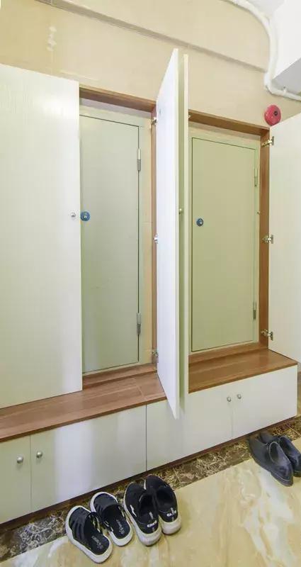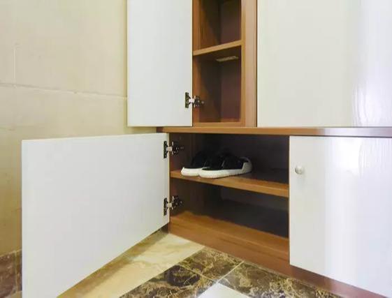 转角的入户柜,卡座的容纳人数大大增加,早上出门不用分批穿鞋,一家人一起换鞋都没问题。
