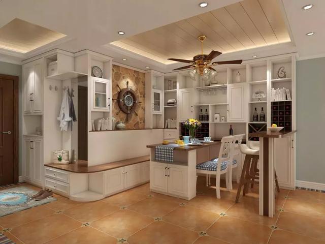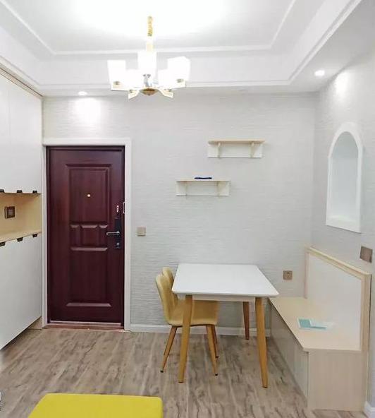 也有一些特殊的户型,进门旁边是一个L型转角,可以设计成一面墙是入户柜,一面墙是卡座,这样设计,转角位能容纳多一个人。