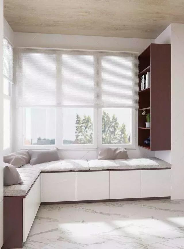 还有一些屋主家是封闭式阳台,他们沿墙打造一个U型卡座,这样可以招待一大群朋友,不用都挤在客厅。