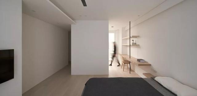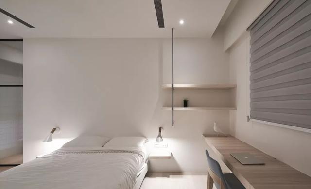 这个卧室的设计更加适合主卧,长条形书桌可以囤下女主所有的化妆护肤用品,开放式衣帽间让出行挑选合适的LOOK更加轻松。