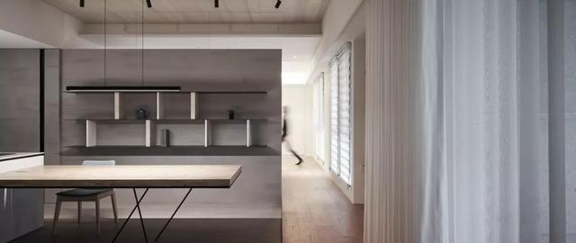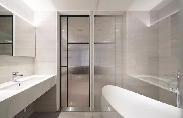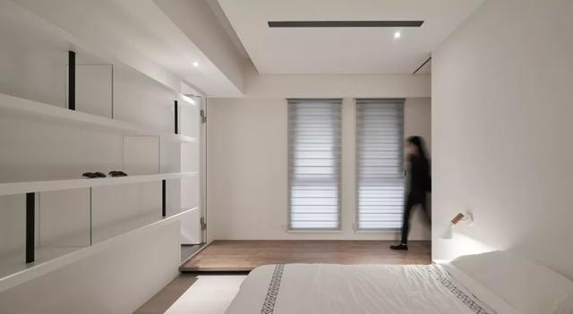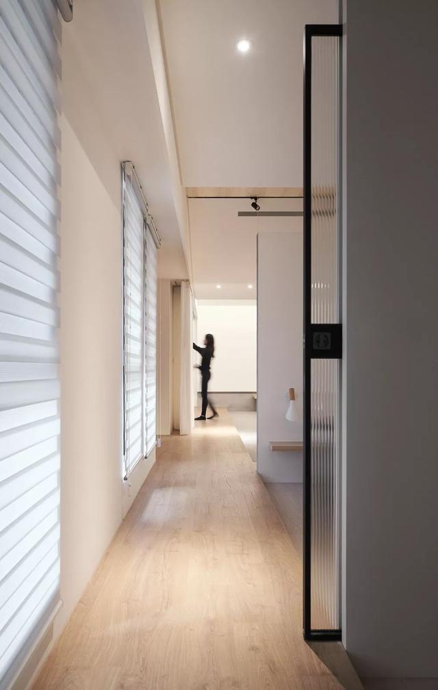 客厅廊道直通的便是这个房间。这样一来,整体装修的联动性更强,不像被隔开的一个个小空间,更像是一个整体。瓦楞玻璃的运用很容易就有高级感。