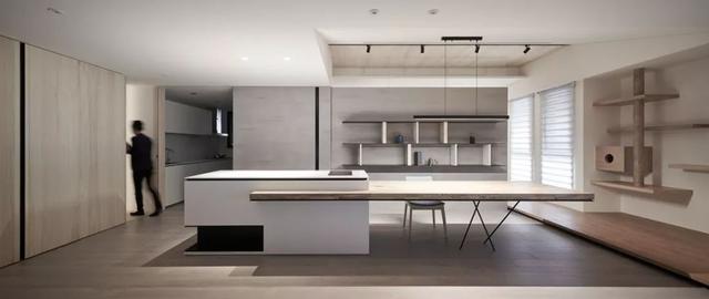一体式餐桌和厨台,家里人再多也不怕。平时做餐前食材的准备工作,台面宽敞更加舒心。亲子互动做美食,空间十足不压抑。