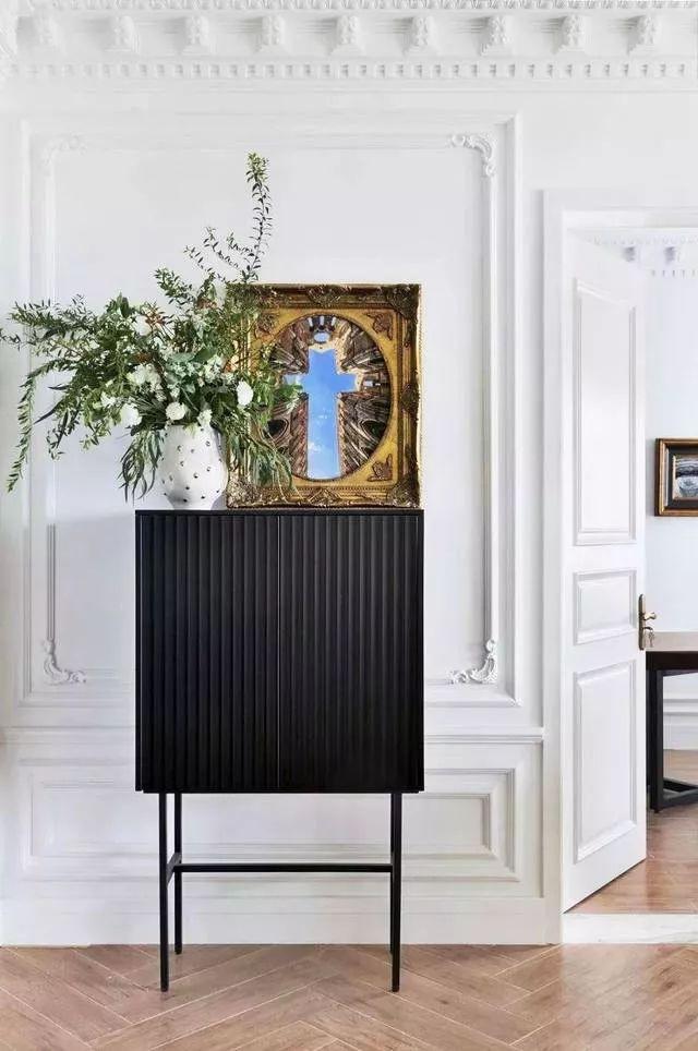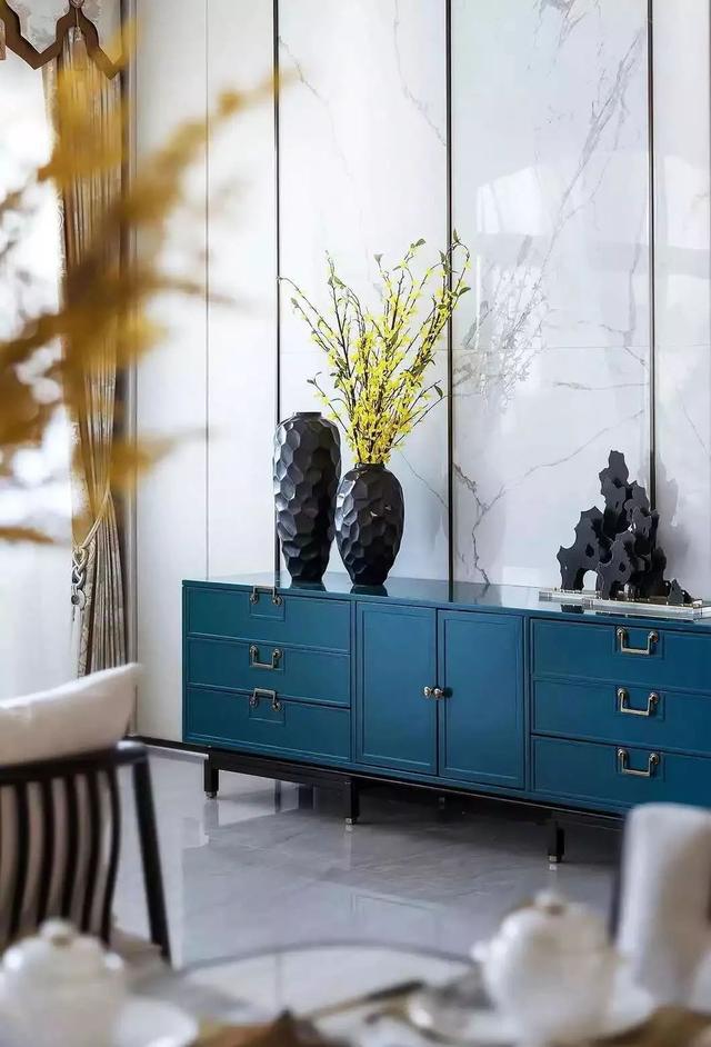 老一辈偏爱的传统中式风格中也多见线条设计,但线条相对厚重方正,给人严肃庄重的感觉,而加入了窄框线设计的轻奢新中式风则化繁为简,用简单利落的装饰线条取代厚重的条条框框,少了几分严肃,多了几分精致简约。