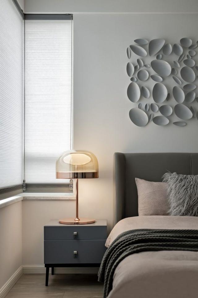 ▲ 次卧因父母偶尔来小住,设计以清雅舒适为主。墙面以两幅简约挂画装点,带来静谧而悠然的气息。