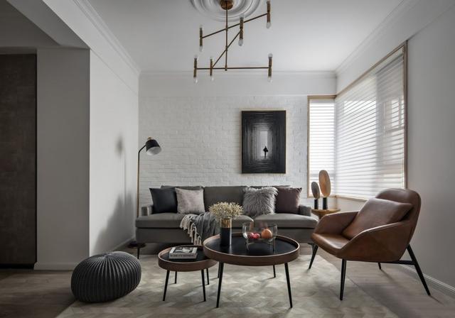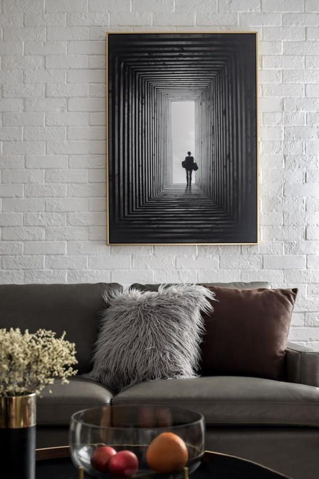 ▲ 沙发背景墙采用白色文化砖,一幅黑白画作提升气场,带来空间视觉上的延伸感,打造独具意境的艺术格调。