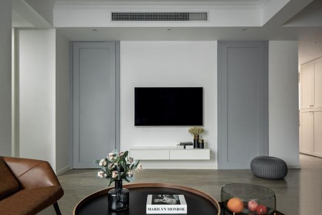 ▲ 些许清新花艺与金色系物件点缀其中,在烟灰蓝的隐形门交织下更显温暖雅致,也让整个空间看起来低调而不失内涵。