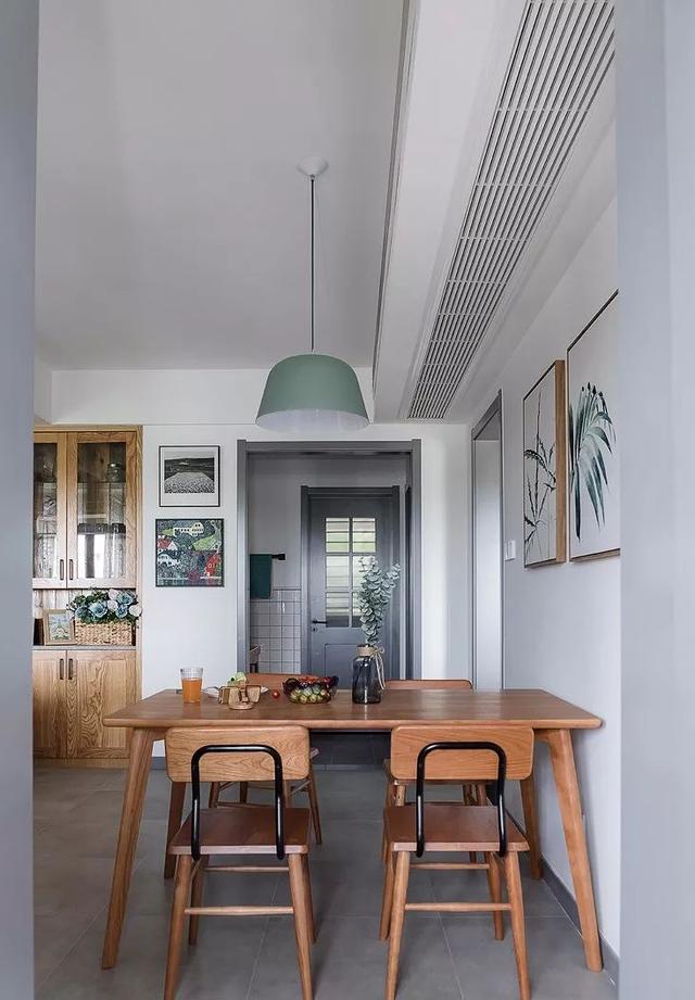 ▲ 木质与灰色的点缀,让用餐空间变得简约时尚而又精致。半开放式厨房开阔空间,实现了空间的通透性和家人之间的情感交流。