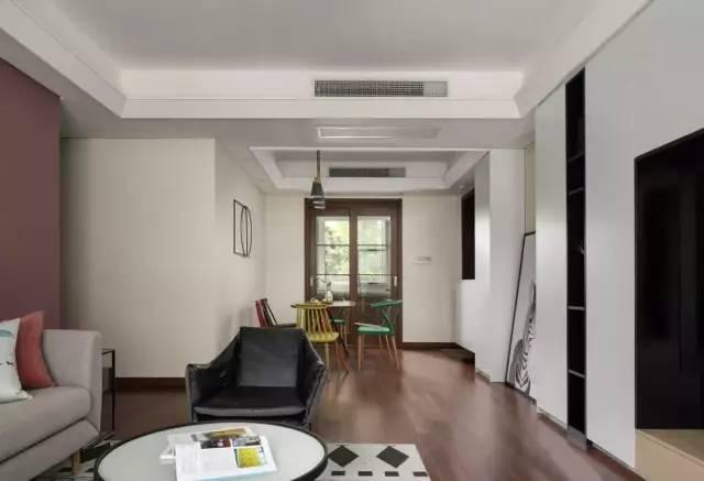▲ 从阳台看客厅全景,色彩与质感的搭配都不落俗套。