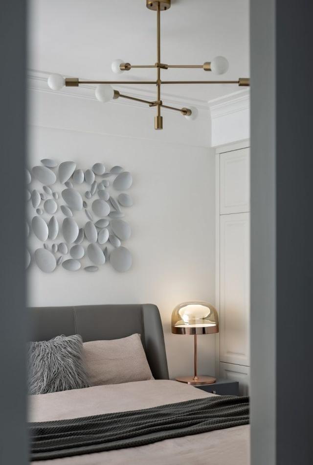 ▲ 主卧以灰白两色为主调,金色元素的加入,使空间呈现出轻奢与高级质感。