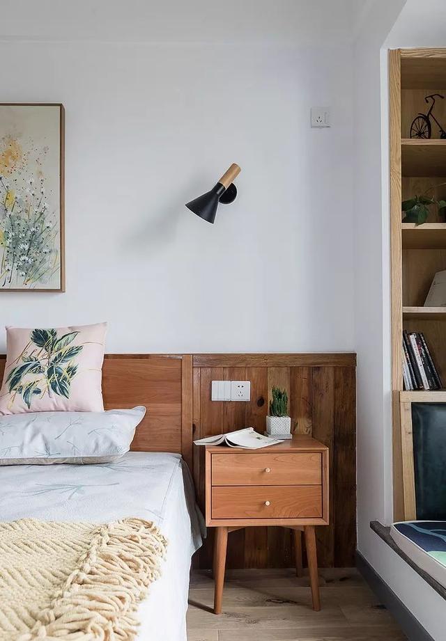 ▲ 白墙搭配木质书桌椅和木床,一切都显得清爽自然。