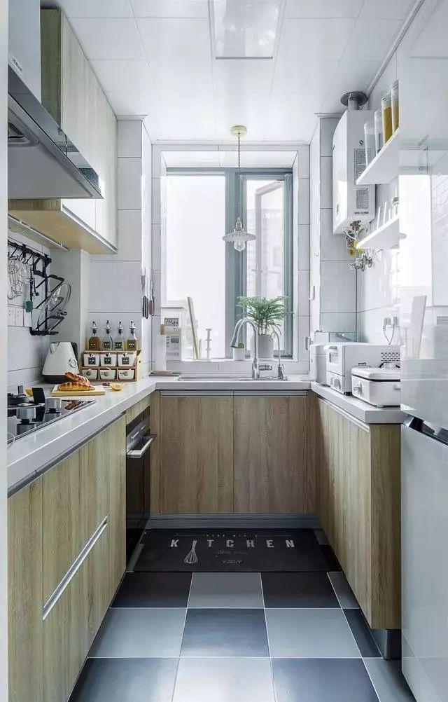 厨房把冰箱的后面的非承重墙,往里移动了几公分,塞下了双门冰箱。