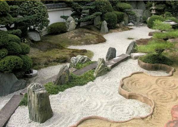 日式庭院简练而精于细节,日本庭院受中国文化的影响很深,细节的处理是日式庭院最精彩的地方。将写意造景发展到极至,其置石石灯石水钵,姿态虬曲的小树已成为日式庭园中不可缺少的小品,日本的风景园是独具格的枯山水。
