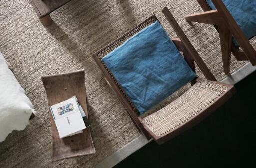 休闲室则铺设了蔺草编织的草席,配合上古布的座椅,历史沉淀感很强。