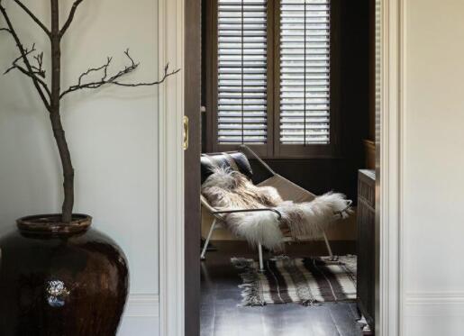 休息室就更加随性了,一个摇椅配上暗色的陶瓷罐+干枝,生机勃勃又随性安然。