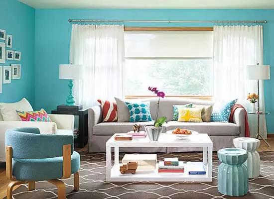 1.窗帘与墙面、家具要尽量避免相似色调,如墙是偏黄色调,而窗帘也采用米黄、杏黄,看似和谐,其实在如此配色的居室待久了,心理上难免会感到“晕”;又如淡湖色的墙面,采用中绿色的窗帘,虽色彩统一,但给人的感觉偏冷。