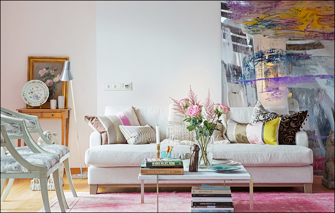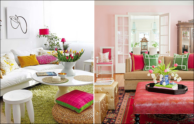 你也想要这样缤纷多彩的客厅吗?那就学着利用色彩的搭配,装扮自己的客厅吧!