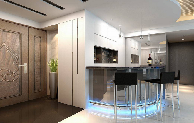 妥善使用零碎空间作为吧台,并搭配沁凉的蓝色LED光源,营造现代时尚氛围。