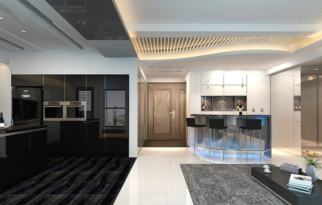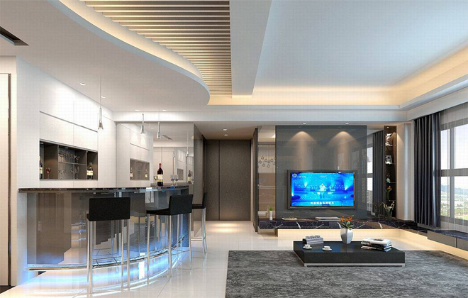 千思装修公司;想必大家看过各式各样的客厅装修效果图,本期小编带来一套潮味十足的简约风公寓,整体模仿了七星级帆船酒店的风格,客厅内有一个吧台,闲暇之余,音乐响起,调一杯酒,站在落地窗前看看这忙碌的世界,夫复何求?