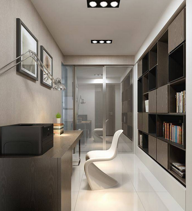 每个空间都有设计巧思,在书房书柜下隐藏一张单人床,方便亲友留宿休憩。
