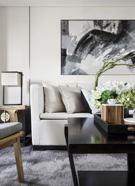 抽象的山水画装饰,淡雅的新中式风格