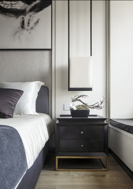 主卧的黑白灰色调,典雅自然