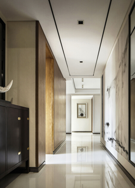 邵阳装修公司:通常意义的“新中式”会比较直白的从中国传统文化以及传统生活方式上寻求切入点并加以演绎,本案立意的“新中式”应该属于更广泛意义范畴里的。不是刻意的描述某种具象的场景或是物件,而是从建筑空间尺度和功能区域的过渡关系里下功夫,极减的用细线条围合勾勒并组合成若干个单元。这种灰钢材质的细线条相当内敛的排列在空间里,似有若无的边界,概念符合中庸之道的新中式风格意境。
