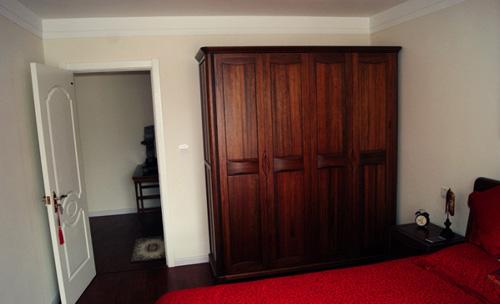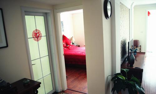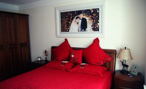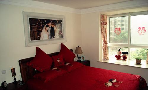 从这个角度看到的是我和老婆的卧室,大红色床单,也是为了配合新房搬迁期。