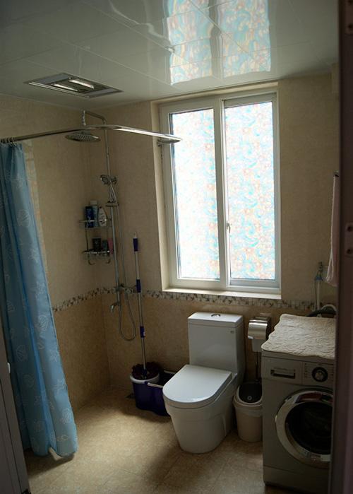 浴室没有很分明的分出干湿区域,用简单的浴帘放置洗澡时水珠飞溅到马桶或者洗衣机上。
