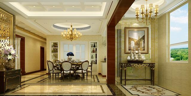 矩形走廊一直是大户型经常遇到的问题之一,此处空间设计合理利用吊顶以及地面造型以及灯光的晕染将空间的深度压缩宽度拉宽。