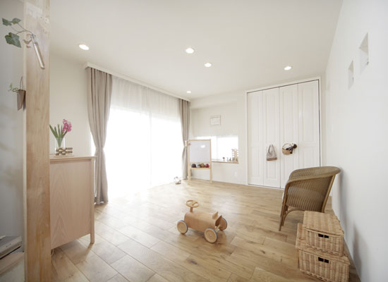 装饰Tips:宝贝的活动空间,充满了童真童趣,木色的地板,清晰可见的木质纹理,仿佛记录着宝贝的点点滴滴,生活的韵味无处不在。白色半透明的落地窗帘,搭配一层麻色的布艺窗帘,两层的样式,增添了立体感的同时,也用淳朴的色彩将宝贝的活动空间装饰的简洁清新。木质的玩具,清新淳朴,竹制手工编织的收纳盒子,装入宝贝的玩具,令整体更加清新,给人一种回归自然之感。再摆放上一些绿叶植物,粉色盛开的花朵,一片生机勃勃之感。