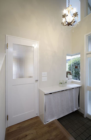 装饰Tips:玄关处,没有多余的色彩,干净整洁的白色和木色就将整个空间装饰的简洁清新,也与空间整体装饰色彩协调统一。白色木板打造的鞋柜,白色的布帘遮挡住里面的鞋子,外观上不仅干净整洁,而且与整体色彩协调统一。拐角处,玻璃的小天窗,窗外的景色尽收眼底,日式的淳朴与简洁弥漫整个空间。