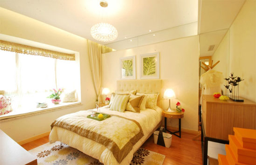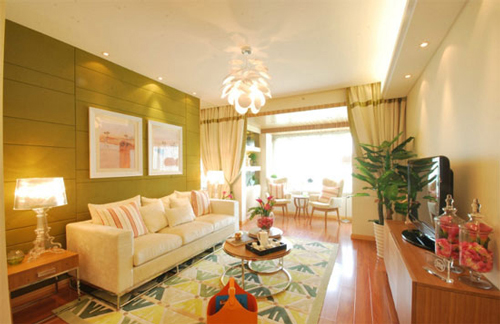 米色、白色、原木色的搭配和简单低矮的家具来营造宽敞明亮的简约氛围。
