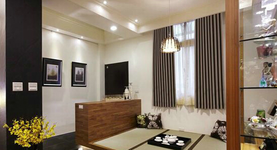 除了整个空间铺上榻榻米,还有实木地板其实也可以。此时选用榻榻米坐垫是个不错选择。榻榻米坐垫是使用本色的席面,难免色彩单一,但榻榻米的布艺包边却有许多花色可以选择。窗帘多选用淡雅的亚麻色,呼应整个日式风格。