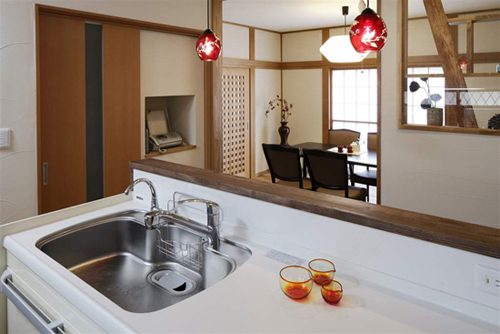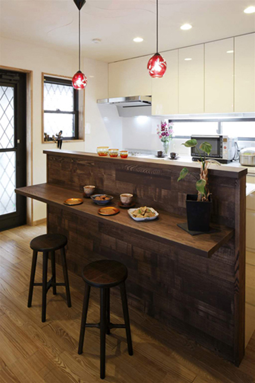 装饰Tips:木板打造的小吧台,还可以作为一个小的餐桌,非常实用,再搭配一个圆形椅子,生活的淡雅之情无法阻挡。红色的吊灯,亮丽的色彩,给厨房装扮的更具现代化浪漫之情。