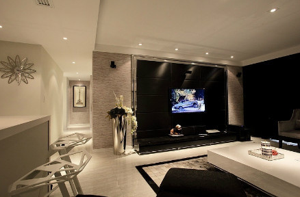 株洲家装公司:【导读】现代简约风格不止采用净白色彩表现出简约时尚的景致,下面一套现代简约风格效果图却用黑色和浅黄色展现一种低调的华丽。