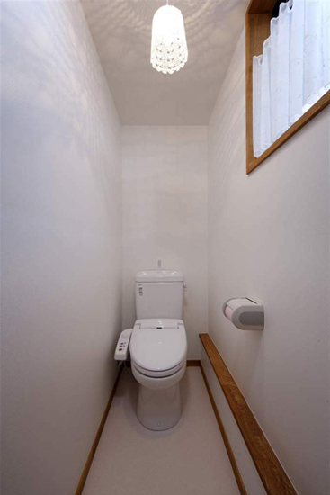 装修TIPS:卫生间的墙壁用了硅藻土,具有除臭和调节湿气的作用。长筒形的水晶吊灯,精美别致。室内的窗户,使得室内的空气更加流通。