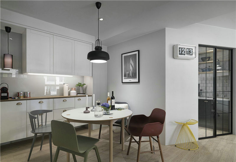 餐桌和桌边柜都采用白色加原木色的组合,自然纯净。餐桌和桌边柜都采用白色加原木色的组合,自然纯净。来自北欧家具潮牌HAY的餐椅,颜色不同造型各异,这就是最流行的餐椅套装啦。